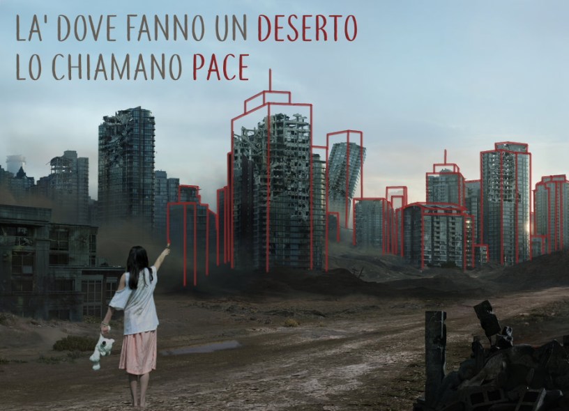 Infatti, abbiamo scelto di accostare ad un’immagine di pace distruttiva una costruttiva la fine di suscitare una riflessione nell’osservatore.