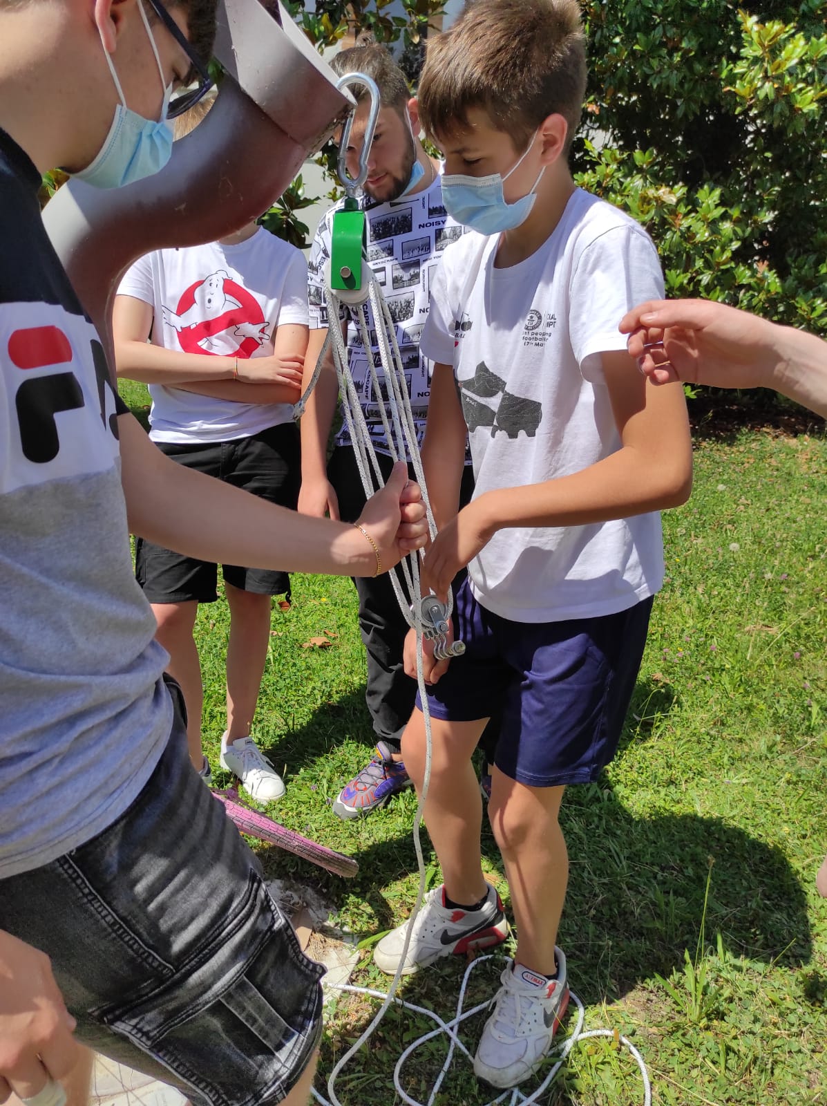 Descrizione: Realizzazione di un paranco contenente 6 carrucole, che permetta di sollevare masse di circa un quintale da parte di una persona sola.