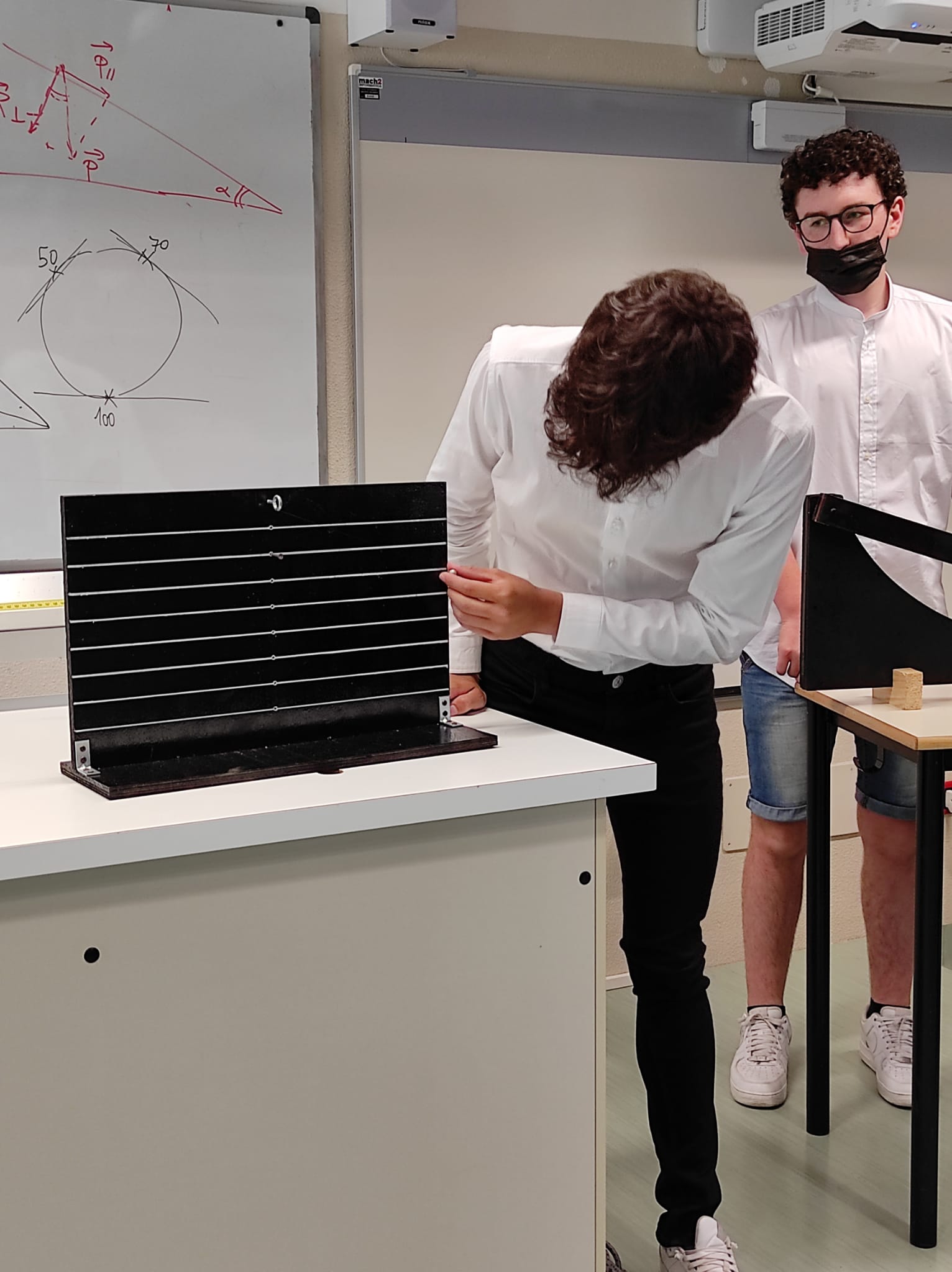 Descrizione: Realizzazione di un piano inclinato con carrello, tale che i materiali costituenti il piano ed il fondo del carrello possano essere cambiati. Dalla misura dell’angolo di inclinazione si ricava il coefficiente di attreito statico tra i due materiali a contatto.
