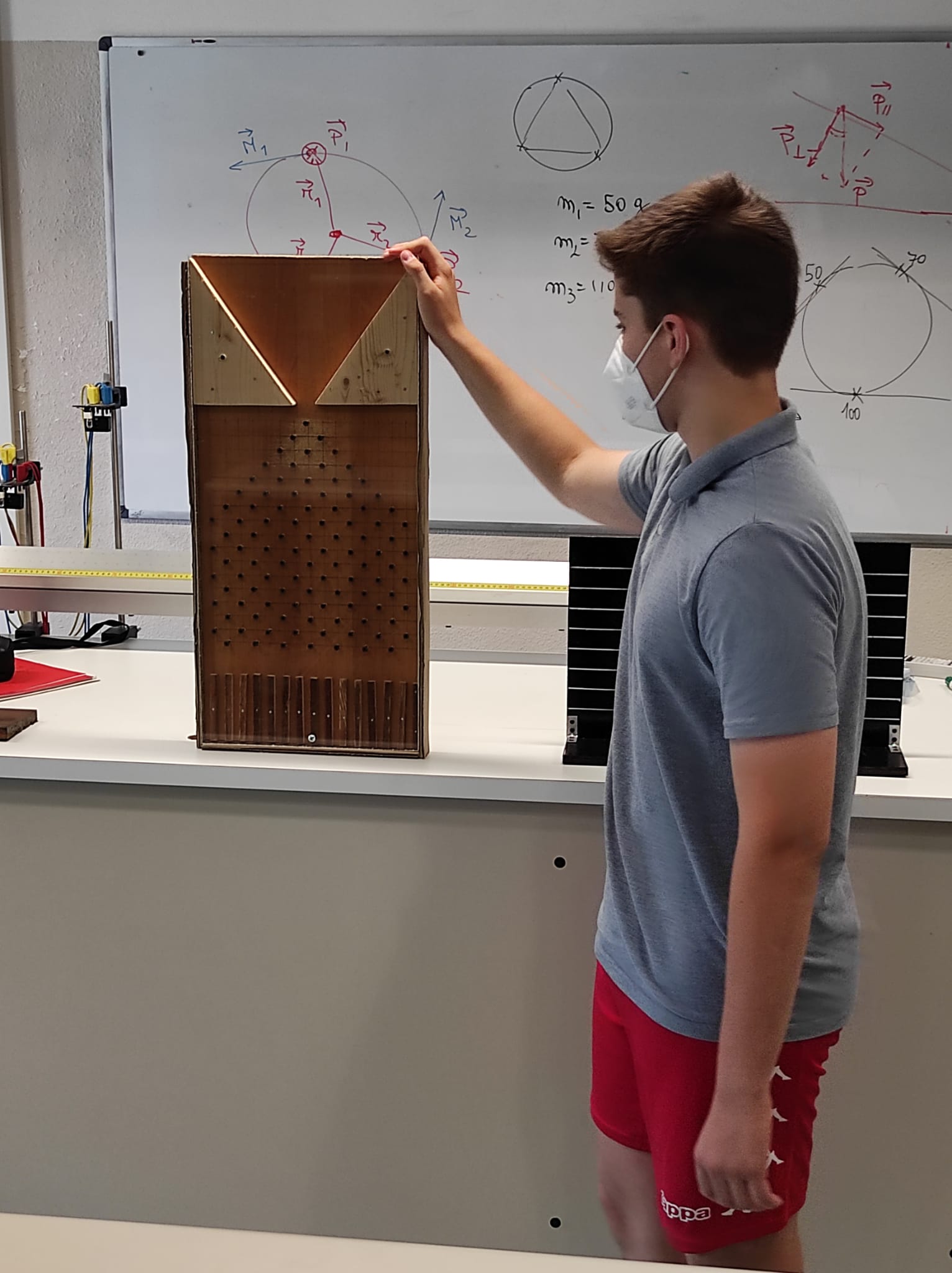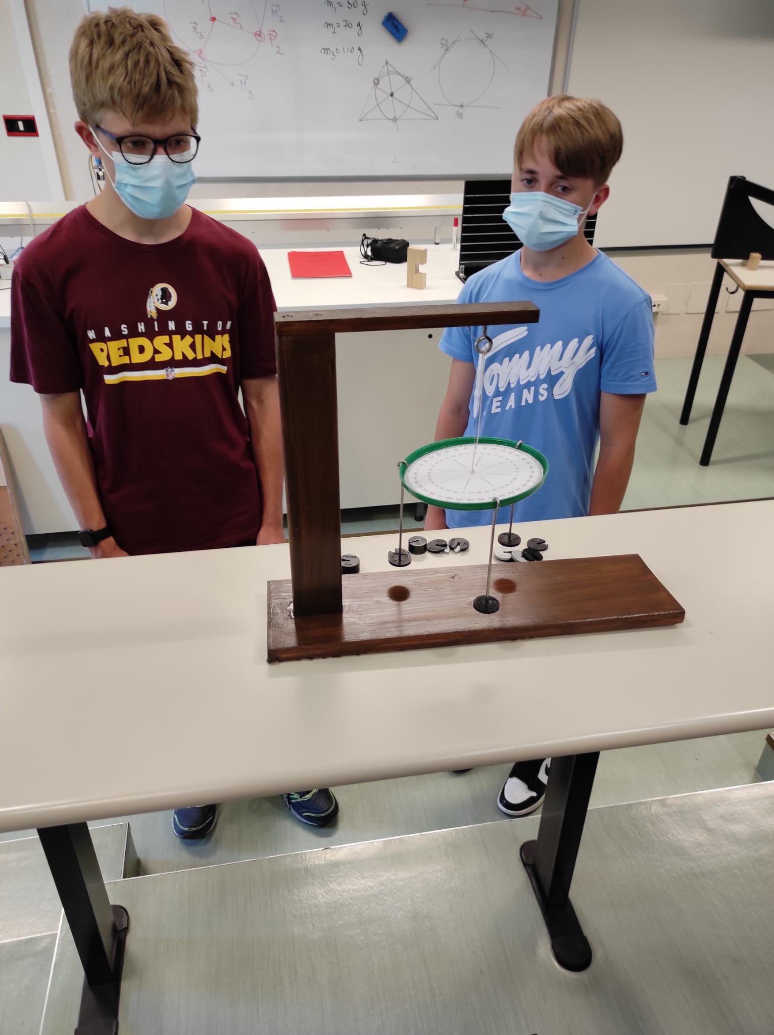 Descrizione: Realizzazione di una piattaforma circolare, appesa tramite un filo vincolato al suo centro, sul cui bordo verranno appese masse differenti, cercando, se possibile, la condizione di equilibrio statico.