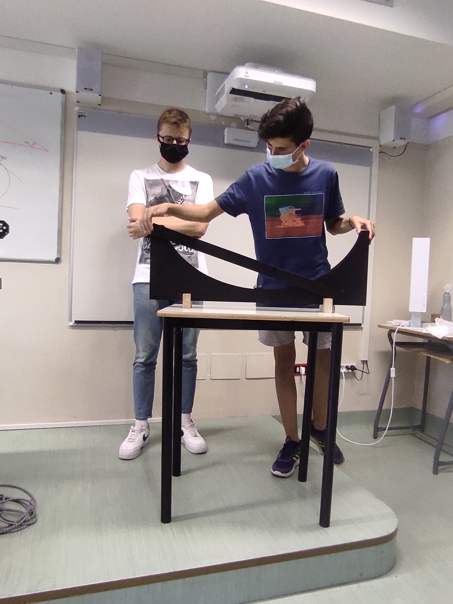 Descrizione: Realizzazione di una guida a forma di cicloide, che permetta di realizzare il tragitto percorribile in tempo minimo tra due punti (brachistocrona), ed anche la traiettoria per cui il tempo necessario per raggiungere il punto più basso, partendo da fermo, è indipendente dalla quota di partenza (tautocrona).